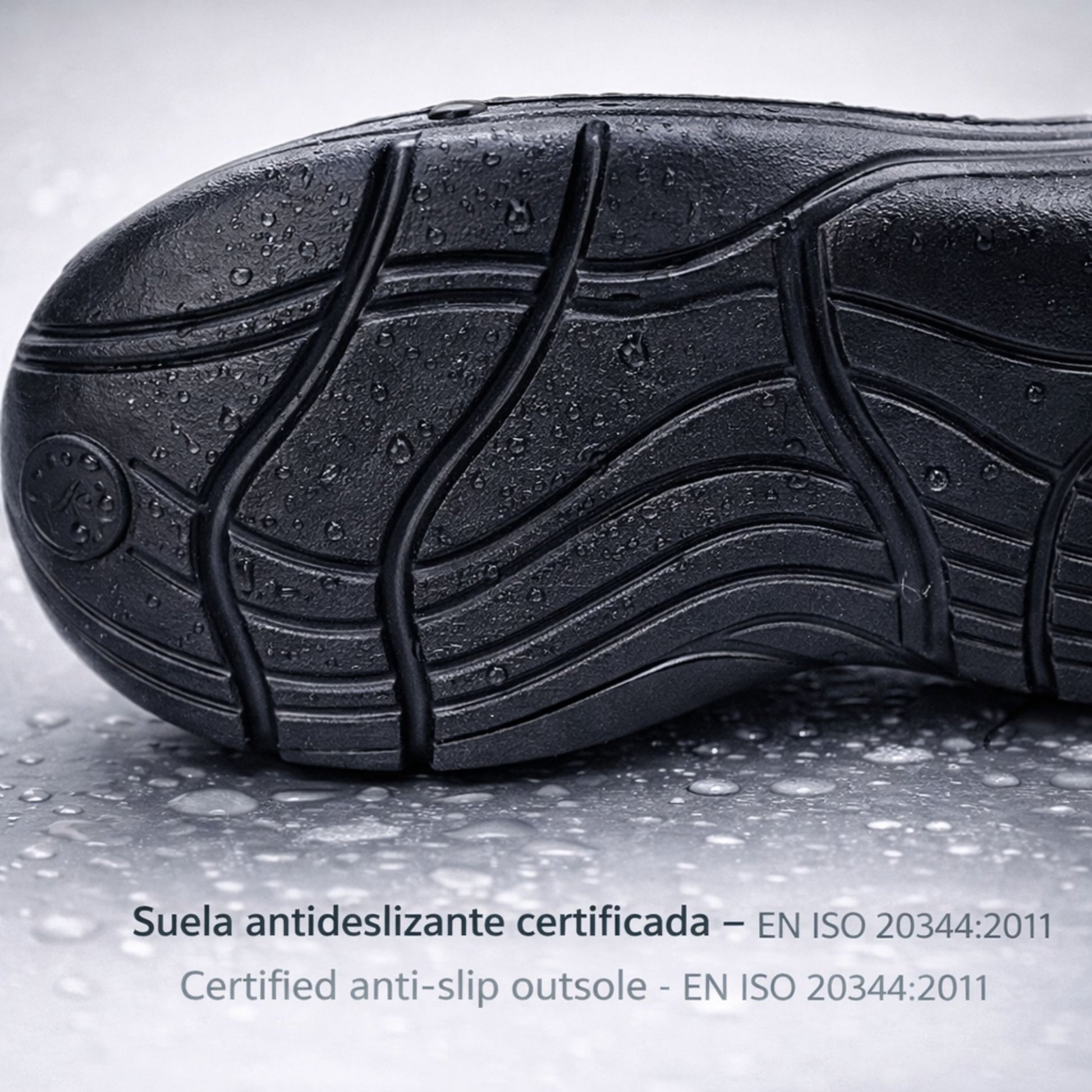 A sola antiderrapante certificada pela norma EN ISO 20344 - 5.11-2011 garante performance de segurança profissional. Testada e aprovada para oferecer estabilidade absoluta em condições críticas - incluindo superfícies oleosas e molhadas.