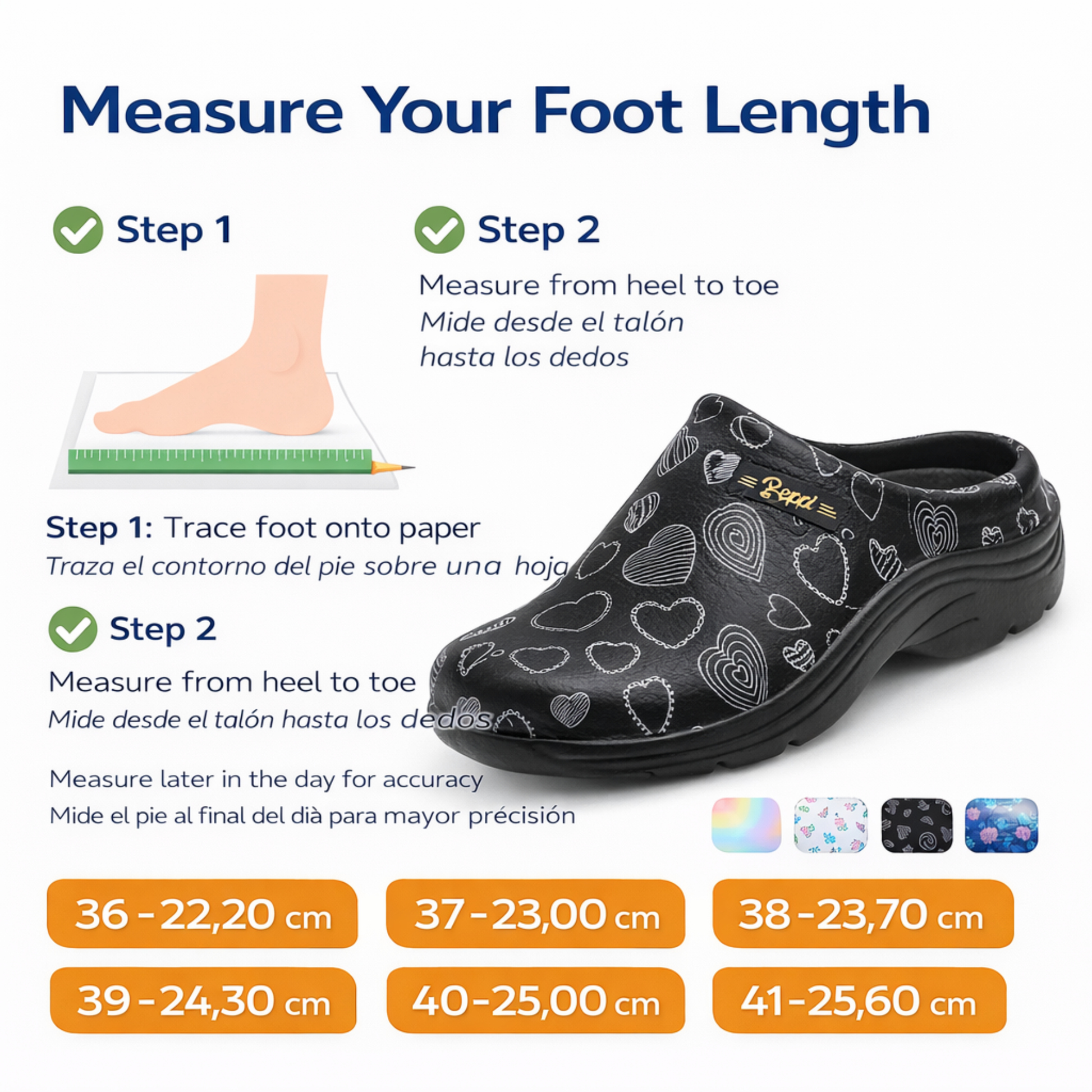 A sola antiderrapante oferece tração segura em pisos húmidos ou escorregadios, tornando estas socas ideais para profissionais de saúde, restauração, limpeza e hotelaria, bem como para uso doméstico