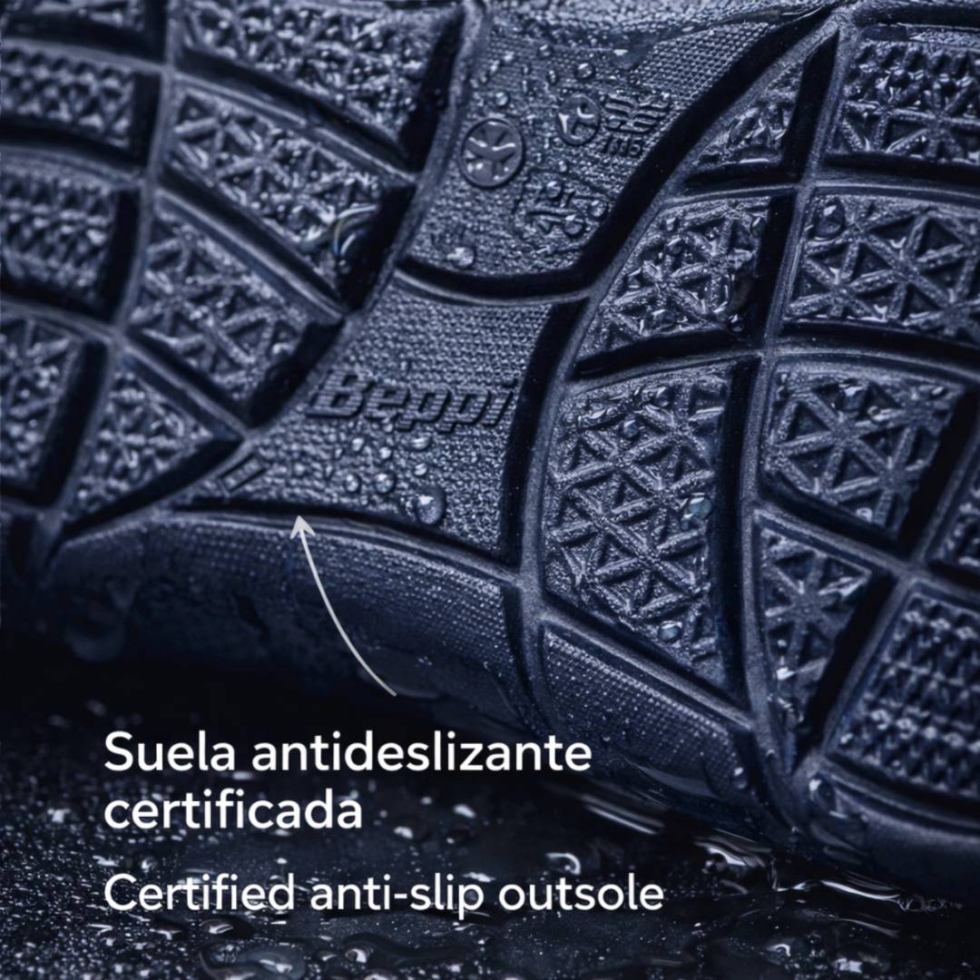A sola antiderrapante oferece tração segura em pisos húmidos ou escorregadios, tornando estas socas ideais para profissionais de saúde, restauração, limpeza e hotelaria, bem como para uso doméstico.